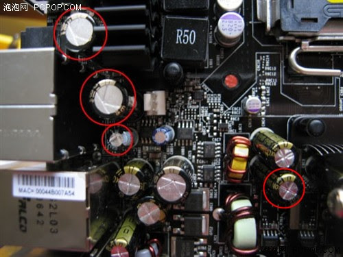 虽然这么多品牌都采用了完全相同的公版PCB,但用料方面还是有差异的,除了散热器可以随便更换之外,原来电容也可以有很多种组合方式。